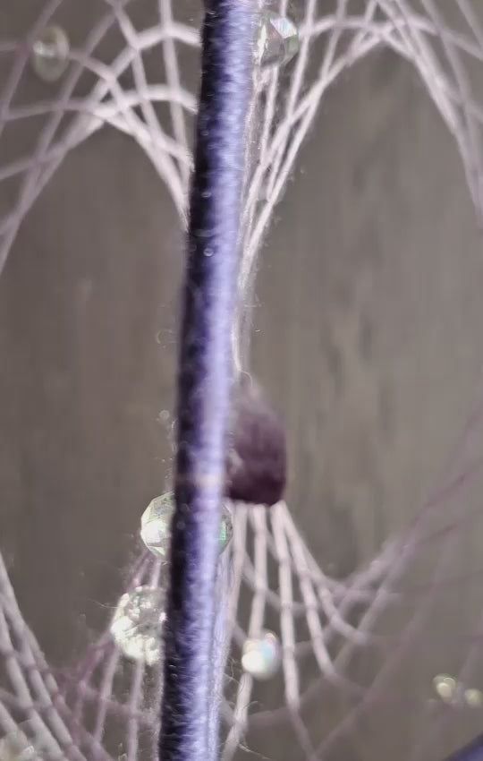 Cet attrape-rêves est en sommeil ! Pour l’activer il suffit de le faire tournoyer afin de le laisser diffuser sa belle énergie violette. Placez-le là où votre cœur vous guide (pas forcément au-dessus d’un lit !).
