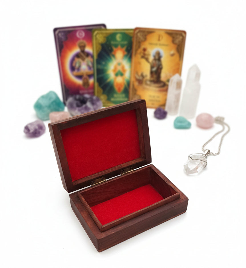 Peut être utilisée comme coffret de rangement, boîte à tarots ou boîte à bijoux selon vos besoins.