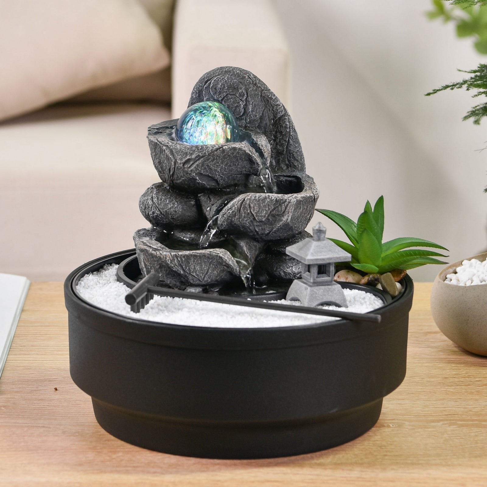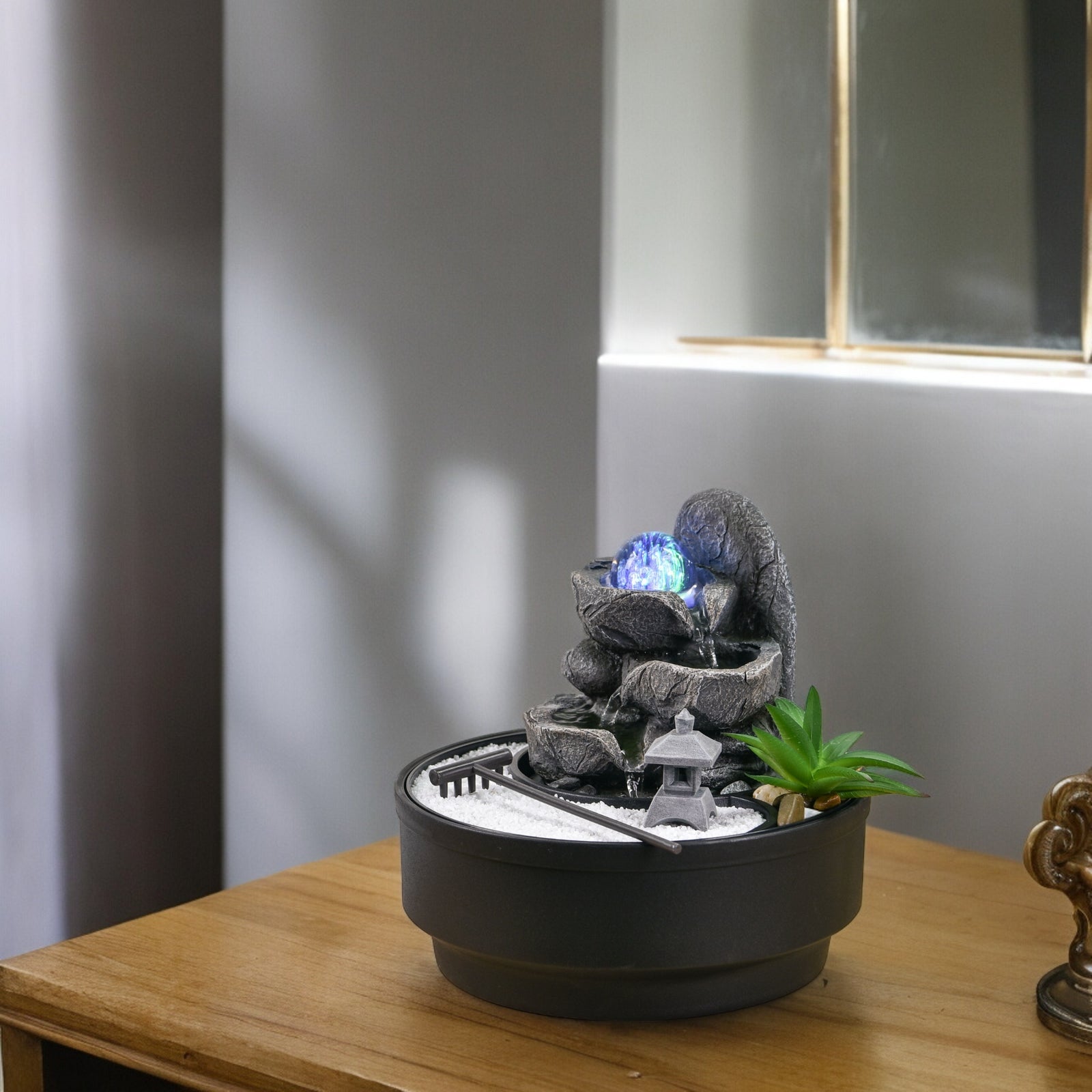 - Contenu : fontaine, vasque, pompe avec led.