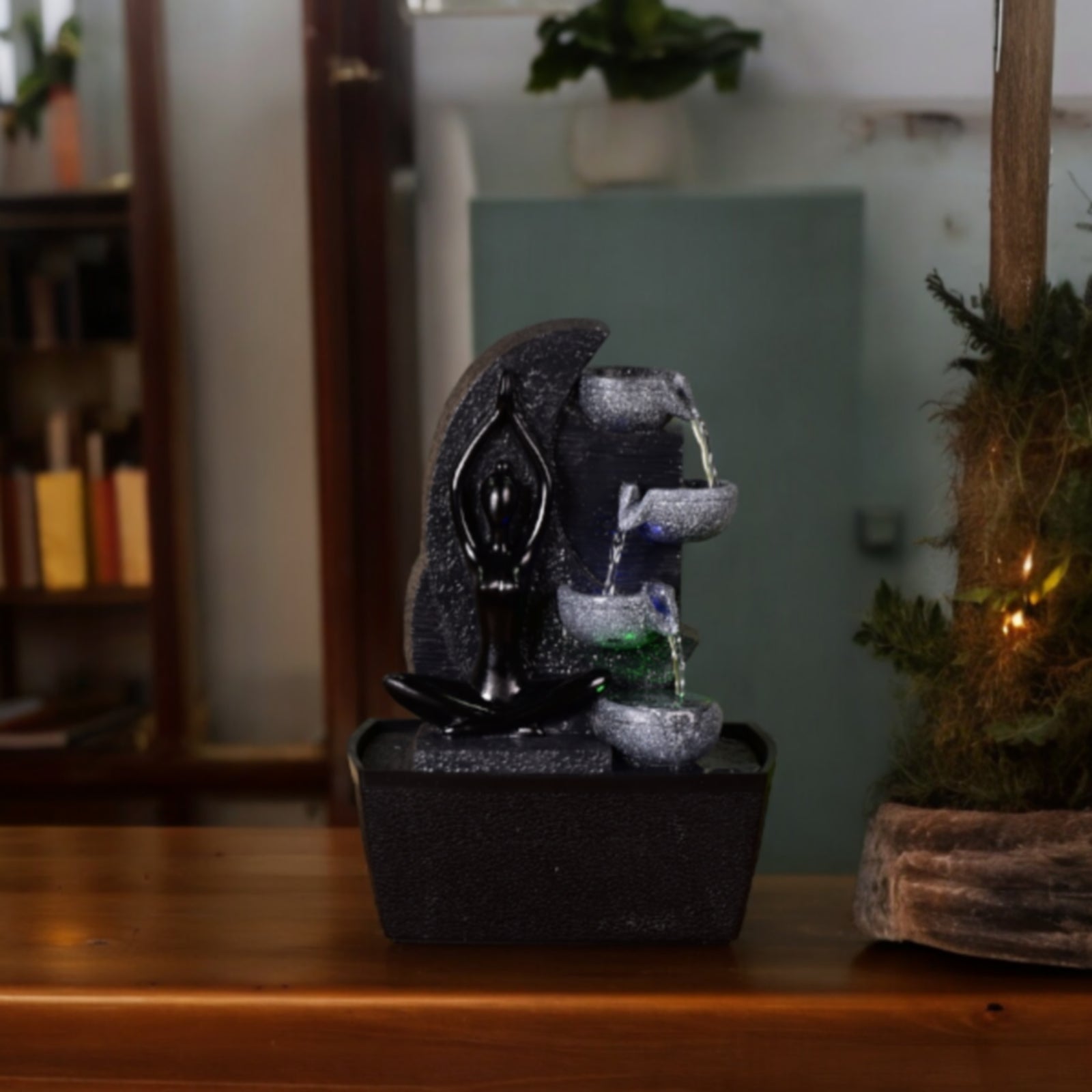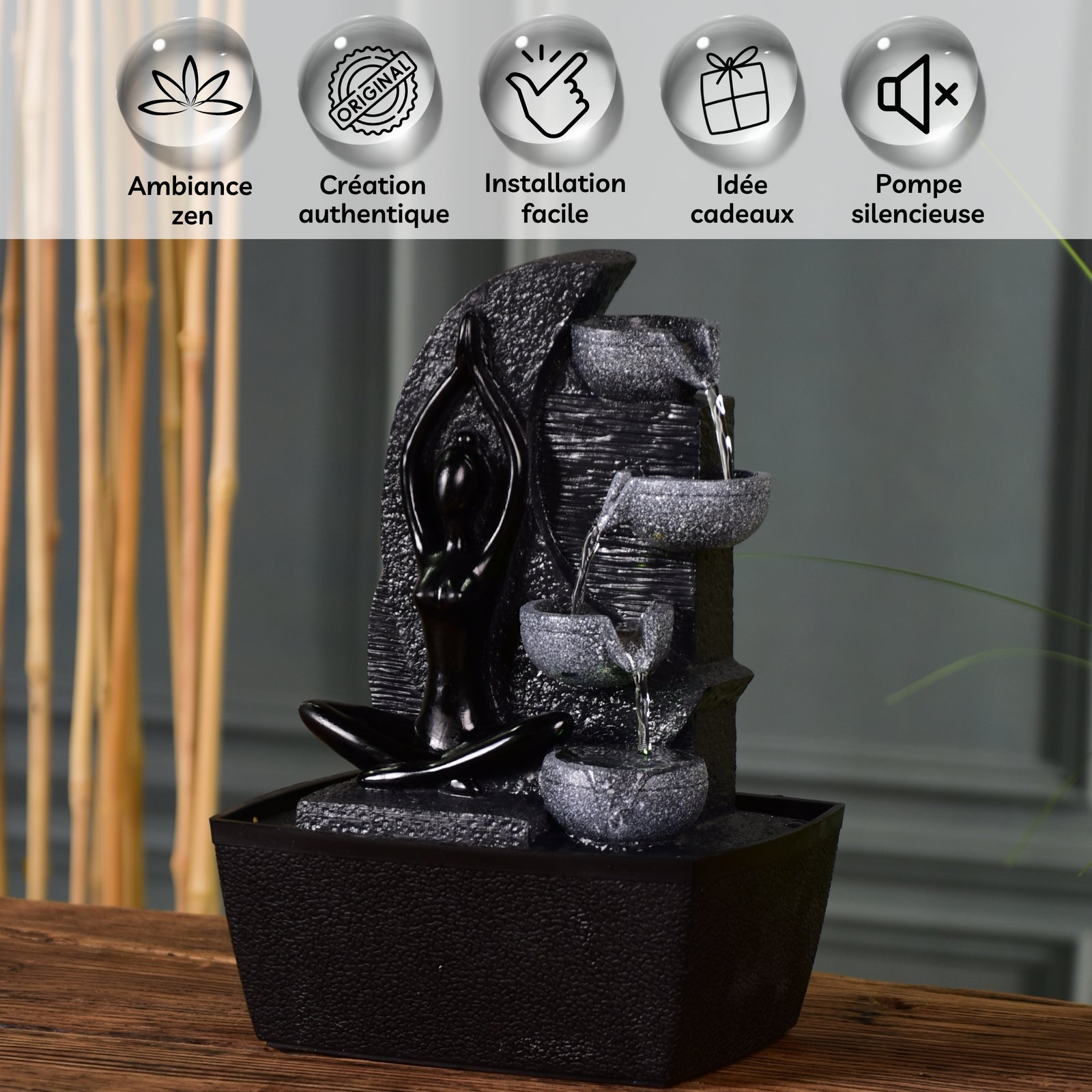 - Contenu : fontaine, vasque, pompe avec led.