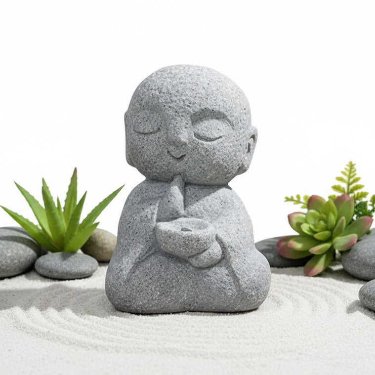 Ce petit moine méditatif en céramique effet pierre invite au calme et à la sérénité. Sa posture paisible et son doux sourire en font un compagnon idéal pour accompagner vos moments de méditation, de purification ou simplement pour décorer un espace zen.