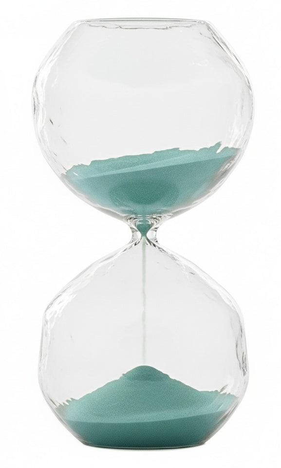 Sablier en verre soufflé artisanal, sable bleu ciel