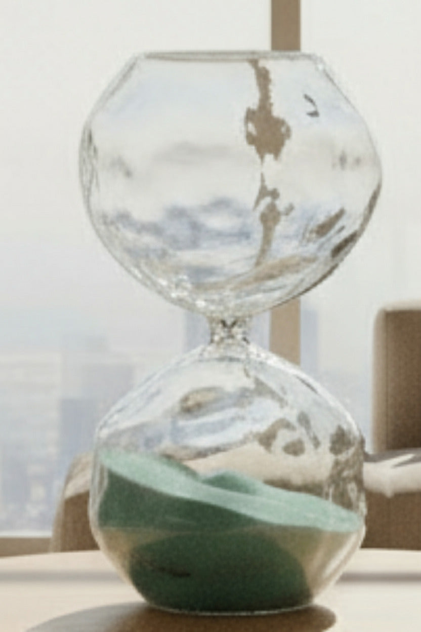 Ce sablier nordique séduit par ses formes organiques, ses parois volontairement irrégulières et son sable coloré bleu glacier. Entièrement soufflé à la main, il marie le minimalisme et l’originalité propre à la décoration scandinave. Idéal pour rythmer une pause, décorer un bureau ou apporter une touche apaisante à une pièce.